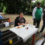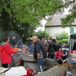 Da sollte man zunächst den Organisatoren und Helfer (männlich und weiblich) einen großen Dank aussprechen. Bei bescheidenen Wetter, er hat nicht geregnet und auch nicht allzu heiß wurde in gemütlicher gemeinsamer Runde gegrillt und sich angenehm unterhalten. Für den Grill war in überwiegend Michael Schäfer und Thomas Kapner zuständig. Er versorgte die Runde mit Würstchen, Steaks und sonstigen Grillgut, dazu wurden diverse Salate und sonstige leckere Sachen gereicht. Getränketechnisch waren wir ebenso hervorragend aufgestellt. Die Klassiker waren anwesend: Limo, Cola, Wasser und