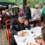 Da sollte man zunächst den Organisatoren und Helfer (männlich und weiblich) einen großen Dank aussprechen. Bei bescheidenen Wetter, er hat nicht geregnet und auch nicht allzu heiß wurde in gemütlicher gemeinsamer Runde gegrillt und sich angenehm unterhalten. Für den Grill war in überwiegend Michael Schäfer und Thomas Kapner zuständig. Er versorgte die Runde mit Würstchen, Steaks und sonstigen Grillgut, dazu wurden diverse Salate und sonstige leckere Sachen gereicht. Getränketechnisch waren wir ebenso hervorragend aufgestellt. Die Klassiker waren anwesend: Limo, Cola, Wasser und
