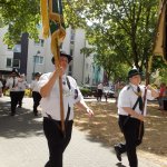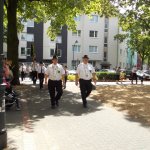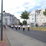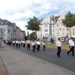 Auch am heutigen Tag traf sich die Gesellschaft auf dem Hof. Nach einem kräftigen und reichhaltigen Frühstück nahmen die Kameraden auch mal so ne leckeren Jägermeister (gesund da 56 Kräuter) zu sich. In gemütlicher Runde wurde zusammengesessen und die Zeit bis zum Antreten durchgeschwitzt. Wir haben in diesem Jahre erstmals in all den Jahren unsere Uniformjacken im Schützenumzug nicht getragen. Zum Antreten sind wir gemeinsam wie in den Vorjahren mit den Kameraden der Ges. Freischütz 05 durch den Stadtteil Oberbilk marschiert.