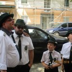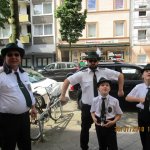 Auch am heutigen Tag traf sich die Gesellschaft auf dem Hof. Nach einem kräftigen und reichhaltigen Frühstück nahmen die Kameraden auch mal so ne leckeren Jägermeister (gesund da 56 Kräuter) zu sich. In gemütlicher Runde wurde zusammengesessen und die Zeit bis zum Antreten durchgeschwitzt. Wir haben in diesem Jahre erstmals in all den Jahren unsere Uniformjacken im Schützenumzug nicht getragen. Zum Antreten sind wir gemeinsam wie in den Vorjahren mit den Kameraden der Ges. Freischütz 05 durch den Stadtteil Oberbilk marschiert.
