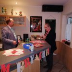Einer der Höhepunkte des Abends war selbstverständlich die Krönung unseres neuen passiven Königs Paul Paffen, der die Königskette von Hans-Peter Hollek übernahm. Paul bat daraufhin unsere n Jugendwart Stefanie Kapner zu sich. Mit seinen Worten drückte er ihr auch die Bewunderung seiner kürzlich verstorbenen Frau Iris aus, für die Art und Weise, wie Stefanie sich um das Wohl der Kinder der Gesellschaft jederzeit sorgt und wie sie sich für deren Interessen einsetzt. Als Dank und Anerkennung für ihren Einsatz überreichte er ihr den „Taler der Stadt Düsseldorf“ sowie einen Umschlag.