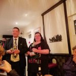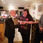 Da in den Pausen zwischen den Ehrungen Lose für eine kleine Tombola verkauft worden waren, begann unser Kassierer Sebastian Bergmann so dann mit der Verlosung der Preise. Modische Accessoires aus allen Bereichen des mehr oder weniger Nützlichen wechselten daraufhin auf humorvolle und unterhaltsame Weise den Besitzer. Zum Ende der Veranstaltung erhielten alle Anwesenden dann noch eine Weihnachtstüte mit Kaffee. Dank der zahlreichen Besucher, der guten Laune und des leckeren Essens ein gelungener Abend zum Ende des Jahres.