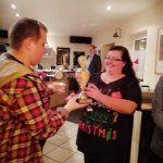 Da in den Pausen zwischen den Ehrungen Lose für eine kleine Tombola verkauft worden waren, begann unser Kassierer Sebastian Bergmann so dann mit der Verlosung der Preise. Modische Accessoires aus allen Bereichen des mehr oder weniger Nützlichen wechselten daraufhin auf humorvolle und unterhaltsame Weise den Besitzer. Zum Ende der Veranstaltung erhielten alle Anwesenden dann noch eine Weihnachtstüte mit Kaffee. Dank der zahlreichen Besucher, der guten Laune und des leckeren Essens ein gelungener Abend zum Ende des Jahres.