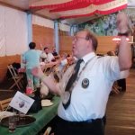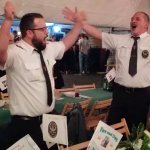 Der Wettergott meinte es in diesem Jahr, trotz ein paar Regentropfen am gestrigen Freitag, wieder sehr gut mit uns. Nicht so heiß, wie im vergangenen Jahr, war jedoch schon absehbar, dass der ein oder andere Schweißtropfen bei sonnigem Wetter fließen würde. Darunter sicherlich der ein oder andere Tropfen Angstschweiß (Stichwort Spießphone). Dankenswerterweise hatten Stefanie und Thomas Kapner wieder ihren Hof zur Verfügung gestellt, auf dem sich die Kameraden gegen 12 Uhr einfanden. In gemütlicher Runde stimmte man sich gemeinsam auf die bevorstehenden Festlichkeiten ein, um dann gestärkt zunächst ins Wachlokal zu wechseln. Dort wurde dann unsere Fahnengruppe befördert. Fahenoffizier Pascal Linnemann zum Unteroffizier und Fahnenträger Tom Getzlaff zum Stabsunteroffizier. Außerdem wurde unsere Pagin Celina Kapner zur Schützenanwärterin befördert. Darüber hinaus noch unser Reg.-Fahnenschwenker Uwe Getzlaff zum Leutnant. Allen hierzu unseren Glückwunsch. Dann begaben sich alle Kameraden zum 1. Antreten in diesem Jahr an der Gaststätte „Zum alde Bierhaus“. Von dort zog das Regiment zur St. Josefkirche, um den Gottesdienst zu besuchen. Der Zapfenstreich wurde abweichend von den letzten Jahren, nicht an der Kirche, sondern auf dem Oberbilker Markt abgehalten. Von dort marschierte das Regiment zum Schützenzelt. Nach Eröffnung des Schützenfestes durch den 1. Chef Torsten Petersen wurde der Abend noch sehr unterhaltsam mit den auftretenden Künstlern.
