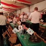 Der Wettergott meinte es in diesem Jahr, trotz ein paar Regentropfen am gestrigen Freitag, wieder sehr gut mit uns. Nicht so heiß, wie im vergangenen Jahr, war jedoch schon absehbar, dass der ein oder andere Schweißtropfen bei sonnigem Wetter fließen würde. Darunter sicherlich der ein oder andere Tropfen Angstschweiß (Stichwort Spießphone). Dankenswerterweise hatten Stefanie und Thomas Kapner wieder ihren Hof zur Verfügung gestellt, auf dem sich die Kameraden gegen 12 Uhr einfanden. In gemütlicher Runde stimmte man sich gemeinsam auf die bevorstehenden Festlichkeiten ein, um dann gestärkt zunächst ins Wachlokal zu wechseln. Dort wurde dann unsere Fahnengruppe befördert. Fahenoffizier Pascal Linnemann zum Unteroffizier und Fahnenträger Tom Getzlaff zum Stabsunteroffizier. Außerdem wurde unsere Pagin Celina Kapner zur Schützenanwärterin befördert. Darüber hinaus noch unser Reg.-Fahnenschwenker Uwe Getzlaff zum Leutnant. Allen hierzu unseren Glückwunsch. Dann begaben sich alle Kameraden zum 1. Antreten in diesem Jahr an der Gaststätte „Zum alde Bierhaus“. Von dort zog das Regiment zur St. Josefkirche, um den Gottesdienst zu besuchen. Der Zapfenstreich wurde abweichend von den letzten Jahren, nicht an der Kirche, sondern auf dem Oberbilker Markt abgehalten. Von dort marschierte das Regiment zum Schützenzelt. Nach Eröffnung des Schützenfestes durch den 1. Chef Torsten Petersen wurde der Abend noch sehr unterhaltsam mit den auftretenden Künstlern.