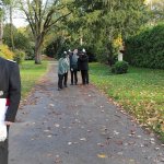 Erstmals seit nunmehr rund anderthalb Jahren trafen sich die Kameraden der Gesellschaft uniformiert zur traditionellen Totenehrung an Allerheiligen, um der verstorbenen Kameraden zu Gedenken. Hierzu traf man sich gegen 10.30 Uhr am ehemaligen Volksgarten-Restaurant, von wo aus das Regiment Richtung Stoffeler Friedhof marschierte. Dort angekommen gedachte zunächst das Oberbilker Regiment gemeinsam, bevor die Kameraden das Grab von Helmut Hahne, stellvertretend für alle anderen verstorbenen Kameraden besuchten. Selbstverständlich war das Grab mit einem Gesteck mit Schleife versehen worden.