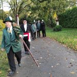 Erstmals seit nunmehr rund anderthalb Jahren trafen sich die Kameraden der Gesellschaft uniformiert zur traditionellen Totenehrung an Allerheiligen, um der verstorbenen Kameraden zu Gedenken. Hierzu traf man sich gegen 10.30 Uhr am ehemaligen Volksgarten-Restaurant, von wo aus das Regiment Richtung Stoffeler Friedhof marschierte. Dort angekommen gedachte zunächst das Oberbilker Regiment gemeinsam, bevor die Kameraden das Grab von Helmut Hahne, stellvertretend für alle anderen verstorbenen Kameraden besuchten. Selbstverständlich war das Grab mit einem Gesteck mit Schleife versehen worden.