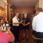 Zu Beginn der Veranstaltung hatte jedoch unser 1. Hauptmann Detlef Hartmann alle Anwesenden begrüßt. Zudem überreichte er unserem Ehrenmitglied Josef Becker eine Ehrenurkunde für seine nunmehr 25jährige Ehrenmitgliedschaft in der Gesellschaft. Der 2. Hauptmann Ralf Linnemann überreichte dann unserem Koch anlässlich seines Geburtstages noch ein Geburtstagsgeschenk in Form einer Chefkochschürze.