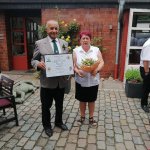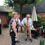 Anlässlich des diesjährigen Schützenfestes in Gerresheim trafen die Jäger sich wieder vor Beginn des Umzuges bei unserem Kameraden Volker Dischleid aus Gerresheim. Der bisherige langjährige 1. Hauptmann Heinz Thomas der 1.Hohenzollern-Kompanie 1907 hatte in diesem Jahr sein Amt in jüngere Hände abgegeben. Aufgrund der langjährigen, freundschaftlichen Verbundenheit zu den Jägern namen wir dies zum Anlass, Heinz Thomas zum Ehrenmitglied zu ernennen. Der 1. Hauptmann Detlef Hartmann überreichte die entsprechende Urkunde mit der Heinz Thomas wohl nicht gerechnet hatte. Entsprechend groß war die Freude.